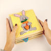 The price is due to the fact that each book is handcrafted piece by piece – for example, every seam and every part is individually sewn. The books are subject to strict quality controls to ensure they are safe for small hands. They are timeless, durable, high-quality, and can withstand years of intensive play. Their value remains constant. The books are extremely time-consuming and complex to produce.