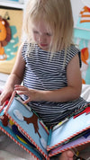 The price is due to the fact that each book is handcrafted piece by piece – for example, every seam and every part is individually sewn. The books are subject to strict quality controls to ensure they are safe for small hands. They are timeless, durable, high-quality, and can withstand years of intensive play. Their value remains constant. The books are extremely time-consuming and complex to produce.